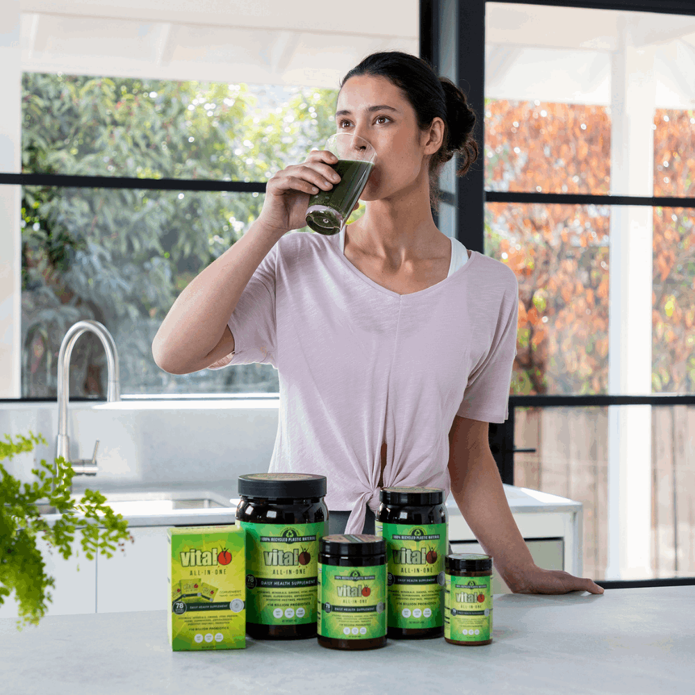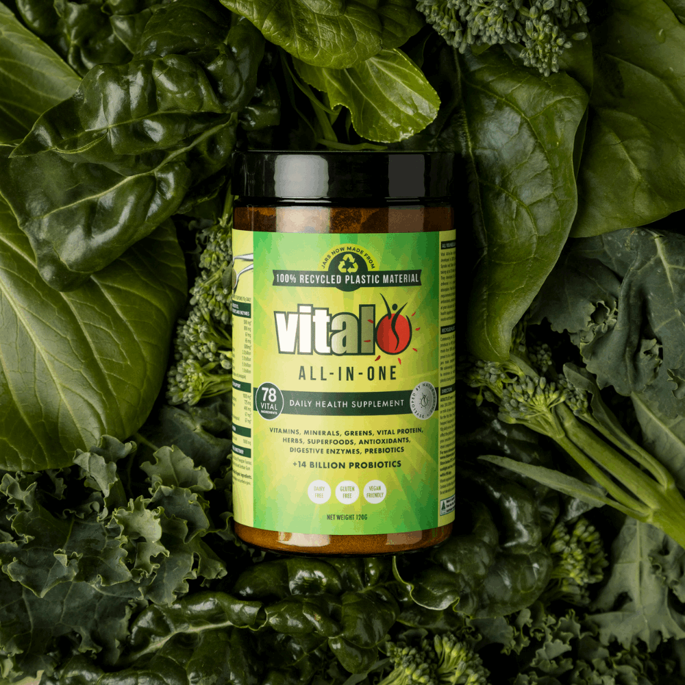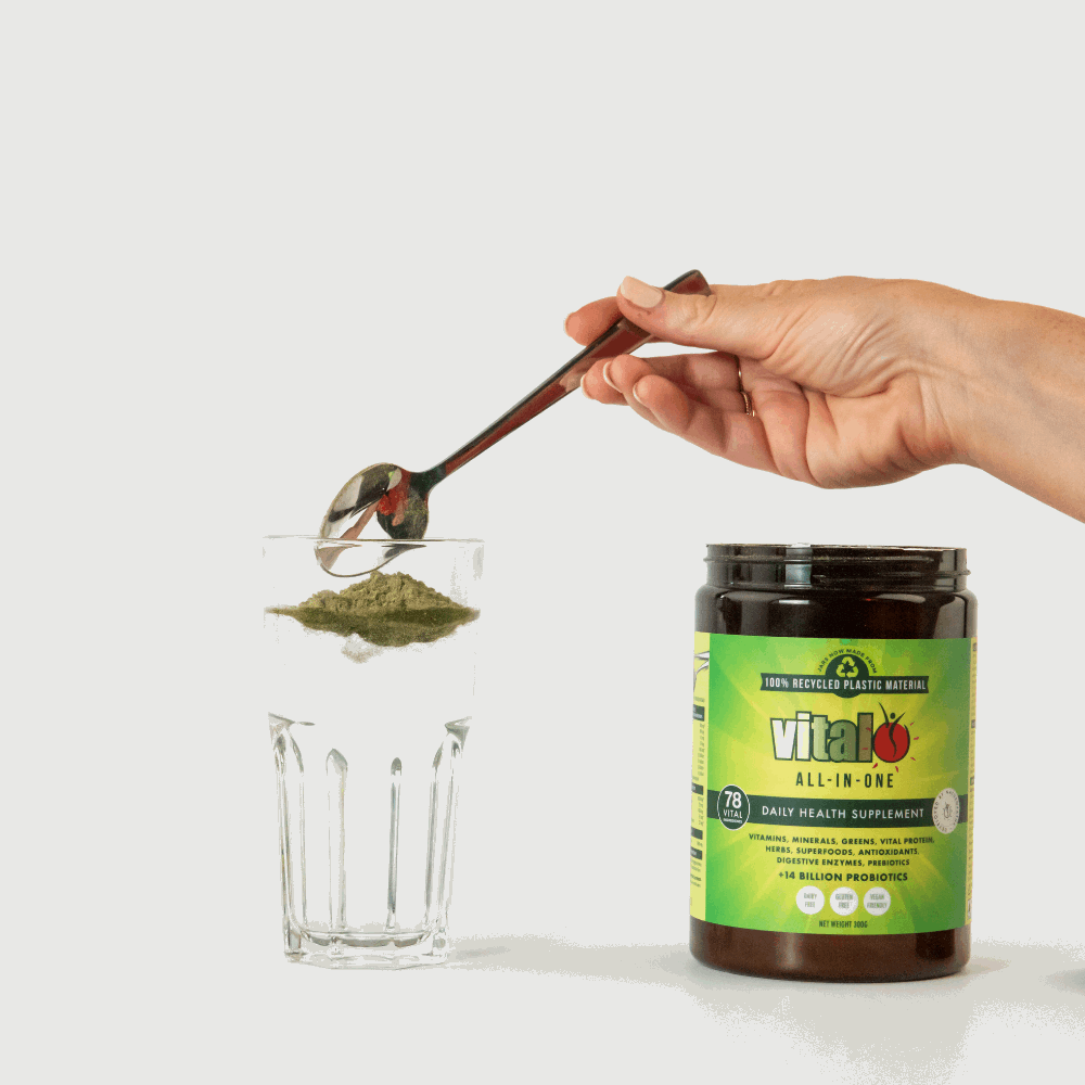Vital All-In-One, previously known as Vital Greens, is an easily absorbed, carefully balanced powder blend of essential nutrients designed to help give your body everything it needs in a day! Just two teaspoons daily of Vital All-In-One delivers 70 vital ingredients that are loaded with vitamins, minerals, cultures, antioxidants, protein, greens and more. It is a powder supplement which encourages better absorption and is a convenient alternative for many, opting for an all-in-one formula over various supplement tablets.